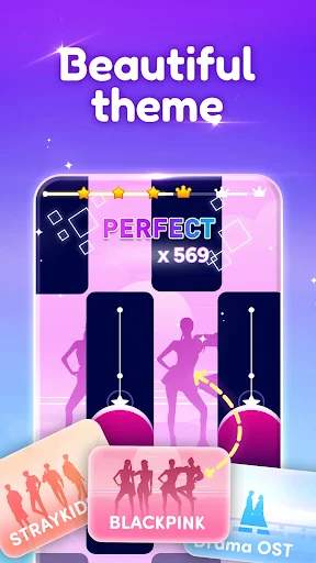 When I first tried Kpop Piano Beats, it immediately felt like stepping into a pocket-sized concert. The game doesn't waste time with long introductions - the moment you tap play, the tiles start dropping and the music takes over. There's something addictive about hearing a familiar Kpop track and realizing you're suddenly part of the rhythm. Instead of just listening like you normally would, you're keeping up with the beat through taps, slides, and long holds. It feels less like a game and more like a jam session where your fingers become instruments. The energy of the songs blends with the simple but bright visuals, and even though the gameplay is easy to understand, it still has that thrill that keeps your heart racing as the track speeds up. The first round left me both smiling and wanting to hit replay right away, which is exactly the reaction a rhythm game should inspire.